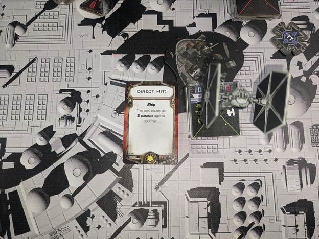 No seriously, he was obliterated very instantly. 2 crits and 2 hits with no rerolls. The poor TIE pilot never got to finish his sandwich.
