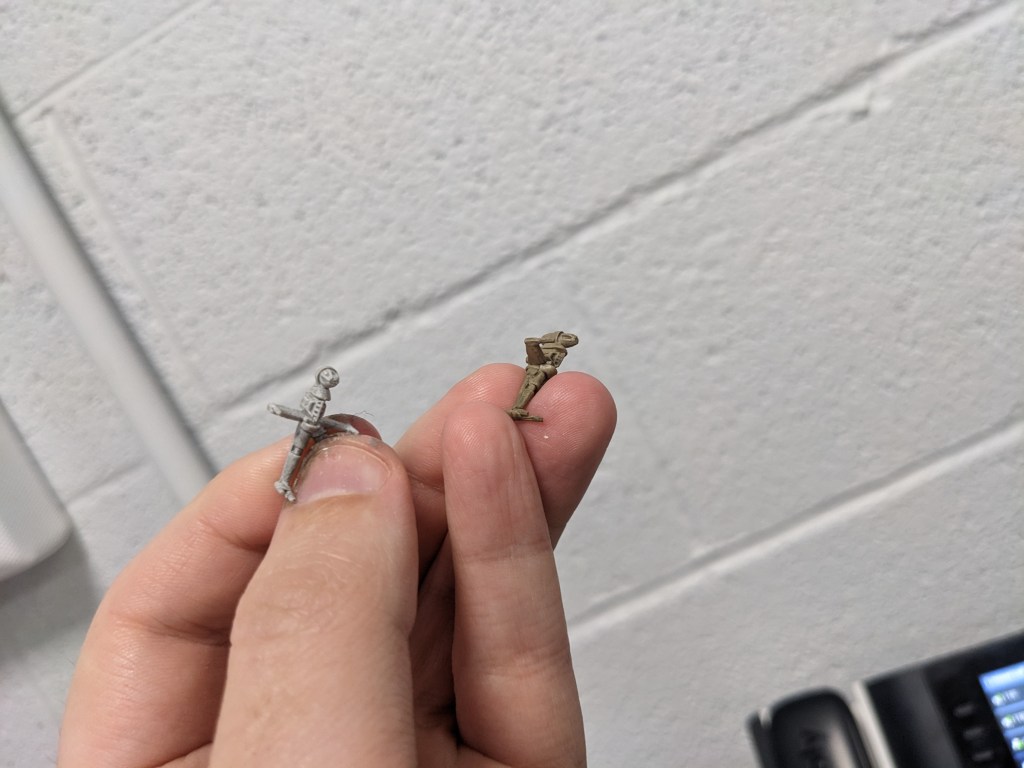 Aces got the red paint treatment with Base Mephiston Red on the cockpit, cannon barrels, and the cannon array housing. A few other marks exist on the engine housing and just “below” the cockpit. For characters, I did the typically Grey in locations the tan ones had, but kept the hull white.